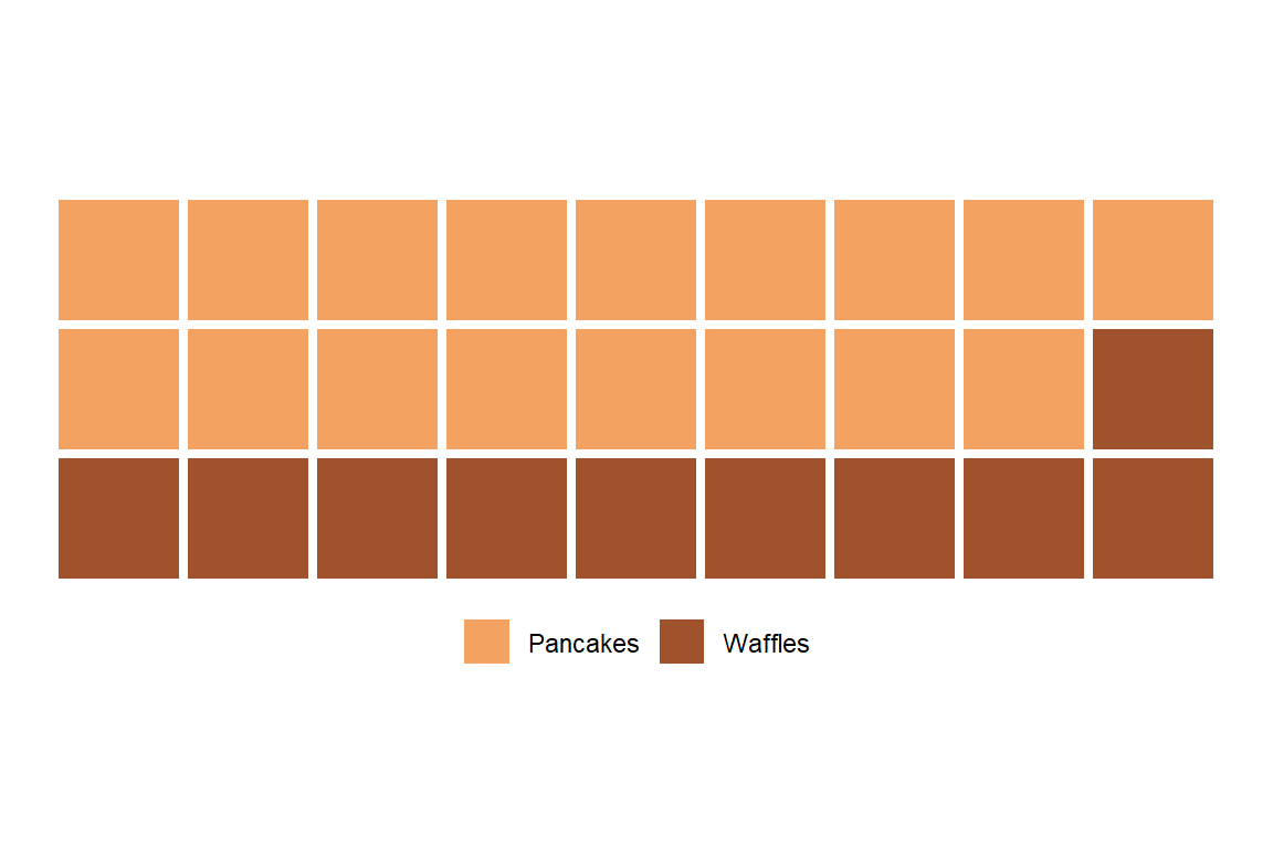 Waffles vs Pancakes (N = 27): Pancakes lead 17–10 (about 63.0% vs 37.0%).