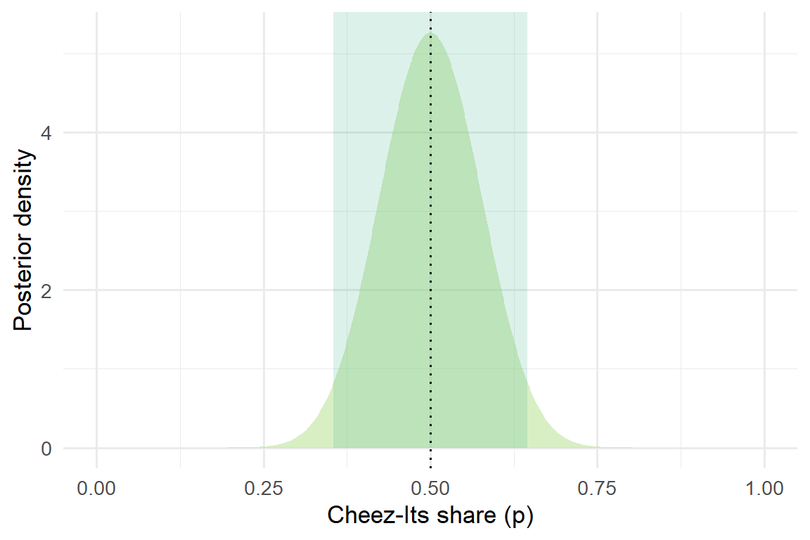 The 95% interval for the Cheez-Its share is wide (reflecting a small sample).